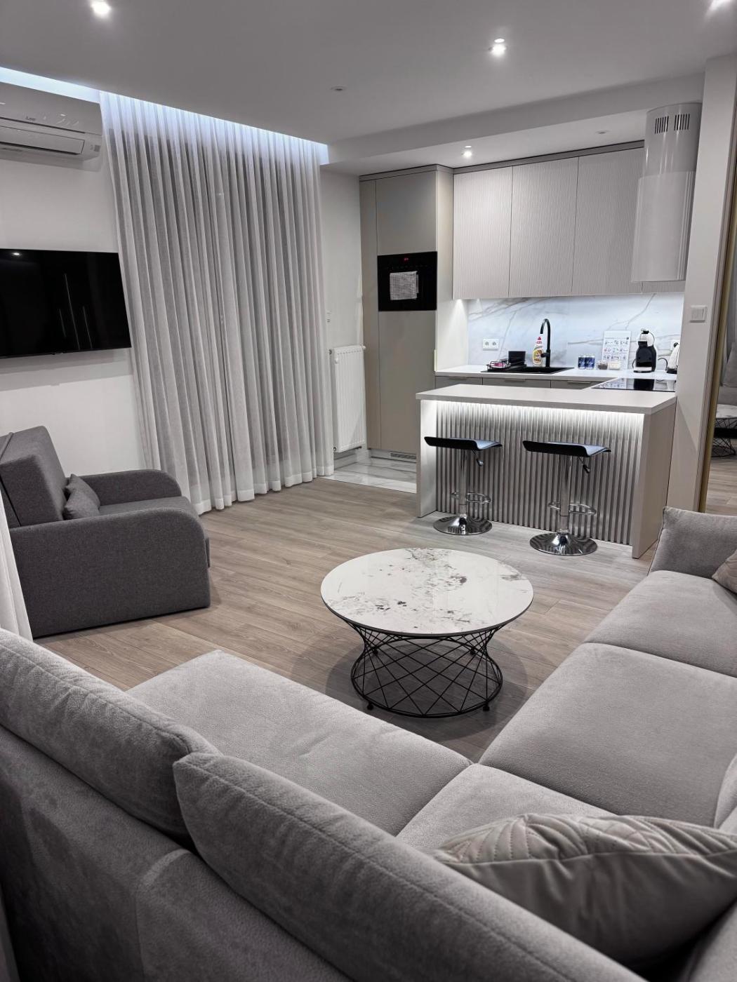 Apartament z 1 sypialnią. This apartment is comprised of 1 living room, 1 separate bedroom and 1 bathroom with a walk-in shower and free toiletries. Meals can be prepared in the well-fitted kitchen, which is fitted with a stovetop, a refrigerator, a dishwasher and kitchenware. This apartment is air-conditioned and features a seating area with a flat-screen TV, a washing machine, soundproof walls, a tea and coffee maker, as well as a dining area. The unit offers 3 beds. Apartament - 5 osobowy. Powierzchnia pokoju ok.: 48 mkw.
