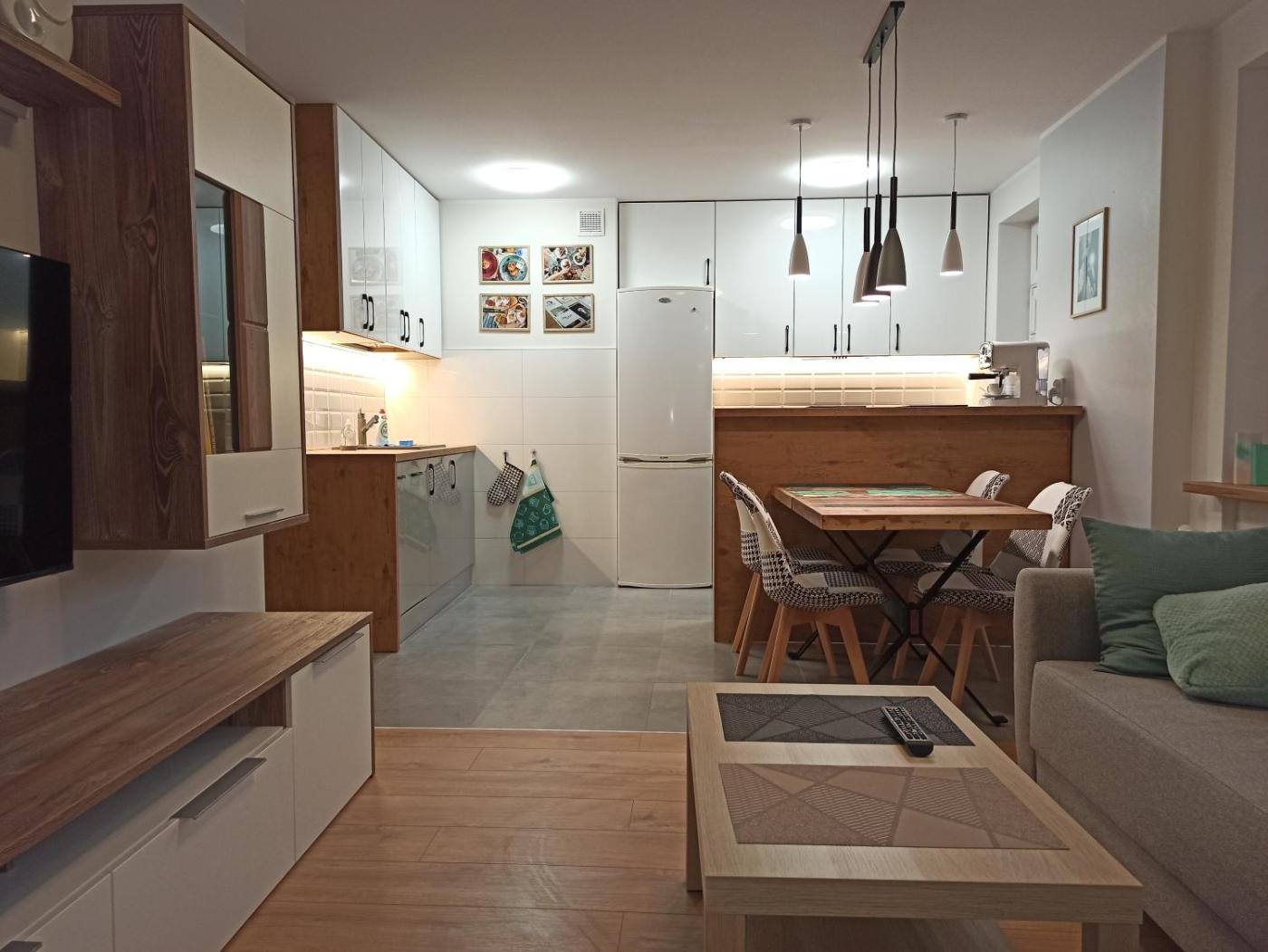 Apartament z 2 sypialniami. This apartment comes with 1 living room, 2 separate bedrooms and 1 bathroom with a walk-in shower and free toiletries. Guests can make meals in the kitchen that features a stovetop, a refrigerator, a dishwasher and kitchenware. The apartment features a washing machine, a private entrance, a coffee machine, a flat-screen TV with streaming services, as well as city views. The unit has 3 beds. Apartament - 6 osobowy. Powierzchnia pokoju ok.: 50 mkw.